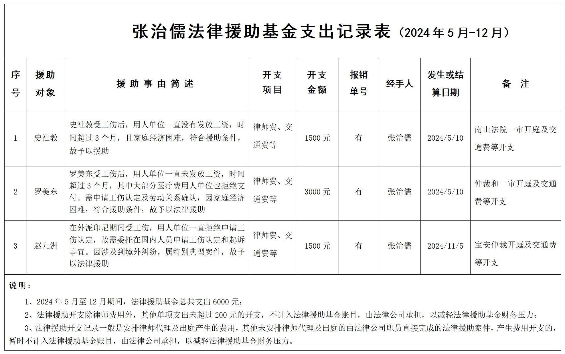 2024年3、4季度法律援助基金财务支出记录表