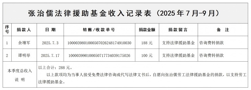张治儒法律援助基金收入记录表(2025年3季度)