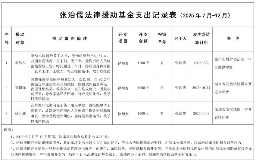 2025年3、4季度法律援助基金财务支出记录表